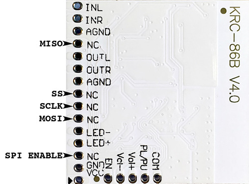 The KRC-86B V4.0 is a CSR8630-based Bluetooth module that is useful as an A2DP-only audio receiver (no headset or hands-free profile, paired phones will not send voice calls to the module) and available from eBay/AliExpress for ~$6.50USD/shipped – this page describes how to access and configure the CSR8630 to change a few common settings (Bluetooth name, codecs, audio tones, etc).